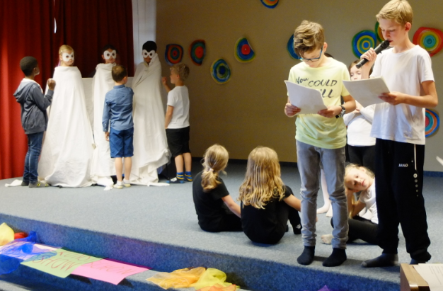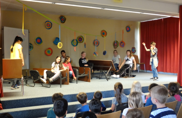 Die 2.-Klässler starten an diesem Tag mit 4 Unterrichtsstunden, die 3.- + 4.-Klässler haben 5 Unterrichtsstunden.