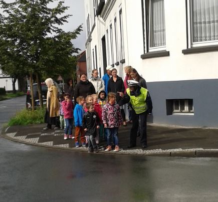 Am 25.09.2017 besuchten die Polizisten Frau Loeber und Herr Drews unsere beiden ersten Schuljahre und führten mit unseren Erstklässlern, unter der Begleitung einiger Eltern, ein Schulwegtraining durch.